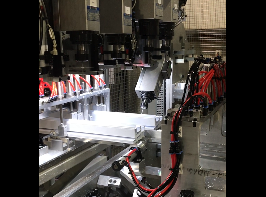 • Machine the frame and the mullion to install the lock, the handle hardware and localization of hole of hardware.